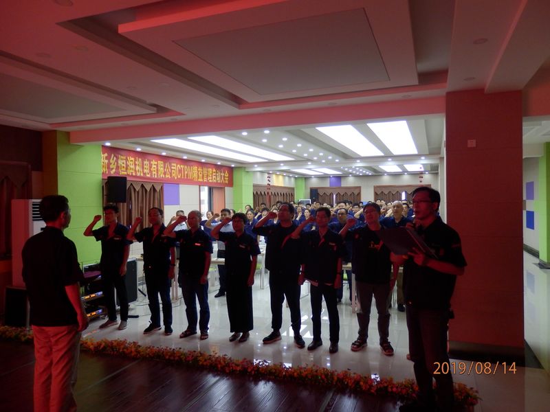 而后顧問(wèn)師對(duì)精益管理的內(nèi)容進(jìn)行詳細(xì)的講解,隨后全體員工進(jìn)行了宣誓儀式,總經(jīng)理講話并宣布新鄉(xiāng)市恒潤(rùn)機(jī)電有限公司CTPM精益管理項(xiàng)目正式啟動(dòng)。